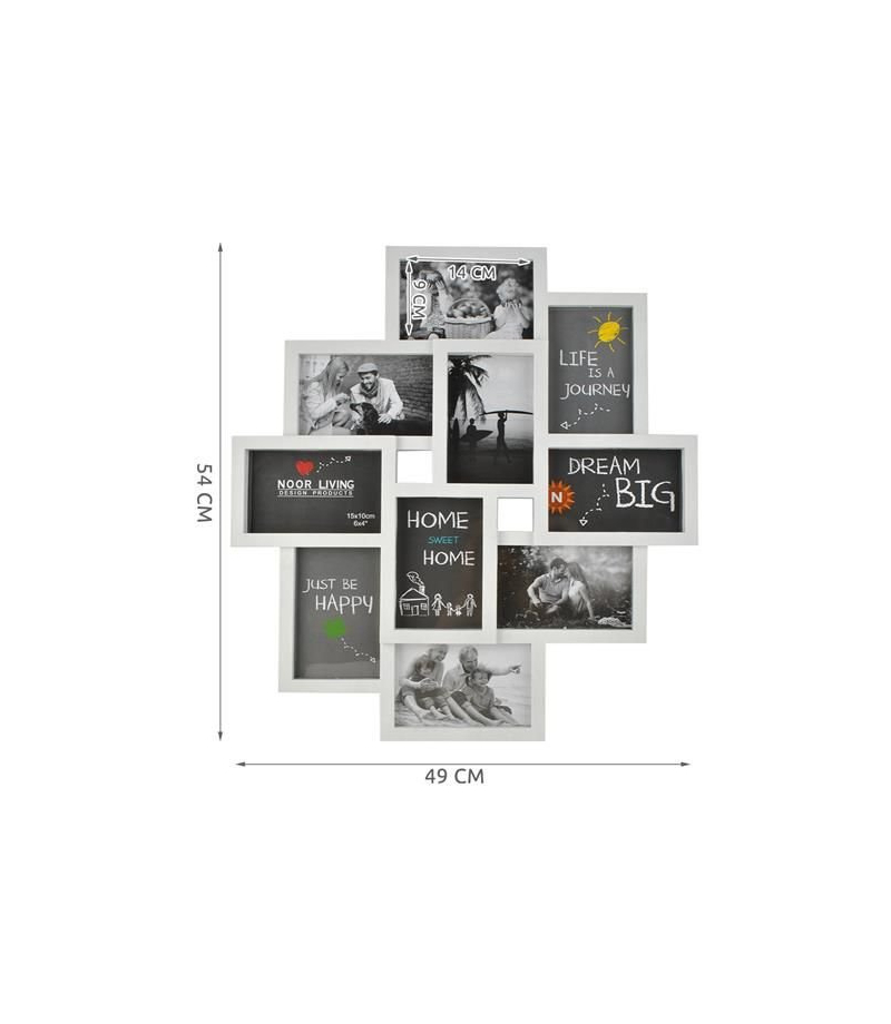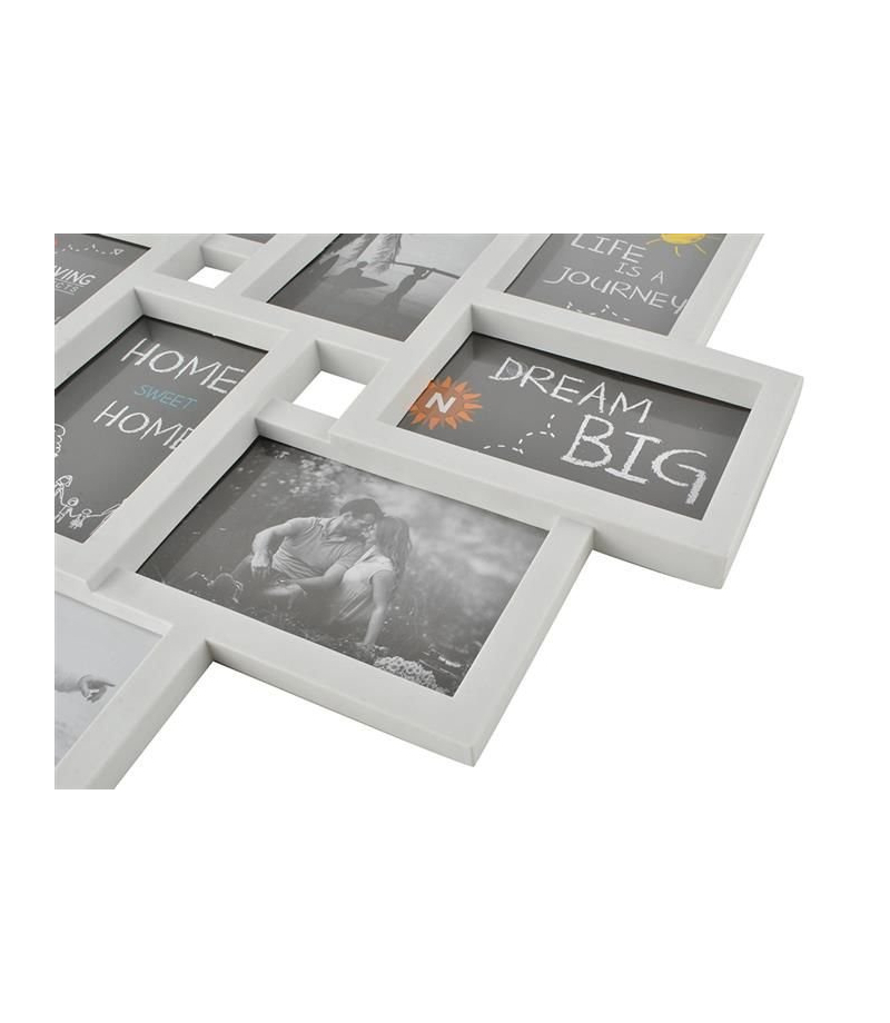 RAMKA NA 10 ZDJĘĆ PRAKTYCZNA – ramka pomieści w jednym miejscu aż 10 zdjęć o wymiarach maksymalnych 10x15cm (z zewnątrz widać format 9x14cm); dzięki połączonym elementom oszczędzamy w domu powierzchnię na ustawienie tradycyjnych 10 ramek; prosty sposób na powieszenie kilku zdjęć bez wysiłku. ATRAKCYJNY EFEKT DEKORACYJNY – ramka ma oryginalny kształt; rozmieszczenie zdjęć daje interesujący efekt kolażu; sprawdzi się jako miły akcent wystroju wnętrz i nada im charakteru....