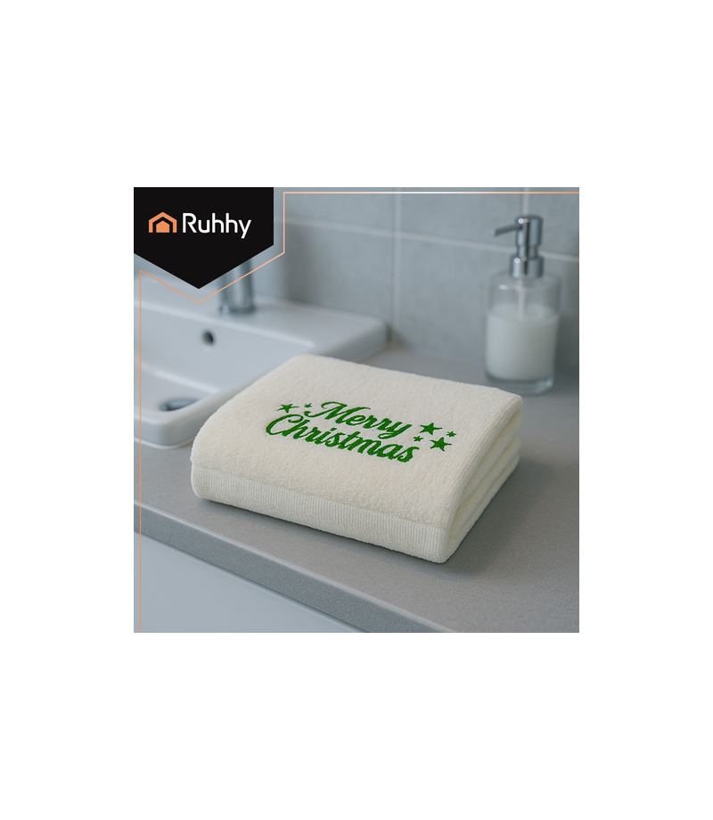 - 2 świąteczne ręczniki - Białe z wyhaftowanym napisem " Merry Christmas"