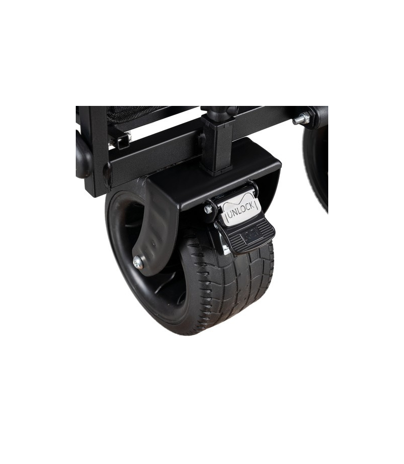 SKŁADANY WÓZEK TRANSPORTOWY DO OGRODU / NA PLAŻĘ SZEROKIE SKRĘTNE KOŁA - wózek wyposażony jest w szerokie bieżnikowane koła wykonane z wysokiej jakości materiału PP, które zapewniają stabilność i łatwość manewrowania na różnych powierzchniach . Koła z przodu wózka są skrętne w pełnym zakresie 360 stopni, co umożliwia precyzyjne sterowanie i łatwe manewrowanie w ciasnych przestrzeniach. Ponadto posiadają hamulce / blokady, co gwarantuje bezpieczeństwo i stabilność podczas załadunku...