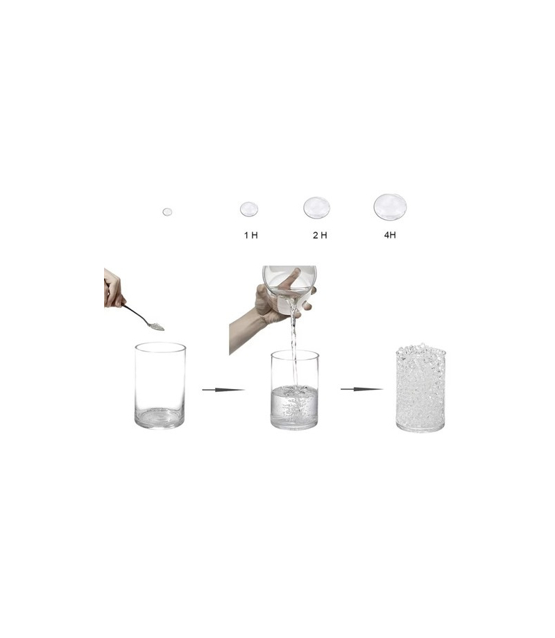 UNIWERSALNOŚĆ I DŁUGOTRWAŁOŚĆ Dzięki swojej wszechstronności, kulki hydrożelowe sprawdzają się w różnych dziedzinach: od domowego ogrodnictwa po aranżacje florystyczne. Kulki są wytrzymałe – zachowują swoje właściwości nawet przez 30 dni po nasączeniu, co czyni je praktycznym i trwałym rozwiązaniem. Kiedy zaczynają się kurczyć, wystarczy ponownie zalać je wodą. Ponadto kulki hydrożelowe można nasączyć olejkami eterycznymi i w ten sposób stworzyć długotrwały odświeżacz powietrza.