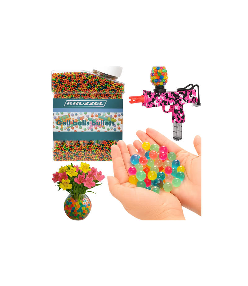 Kulki żelowe, hydrożelowe wodne, 50000 szt, 7,5 mm, do pistoletu karabinu kwiatów, kolorowe KRUZZEL! suche i nieaktywne w momencie zakupu - dzięki szczelnemu opakowaniu, możesz je przechowywać przez wiele miesięcy bez utraty jakości – nie pleśnieją, nie wysychają, zawsze są gotowe do użycia będą pasować do mojego pistoletu - kulki mają uniwersalny rozmiar 7,5 mm i...