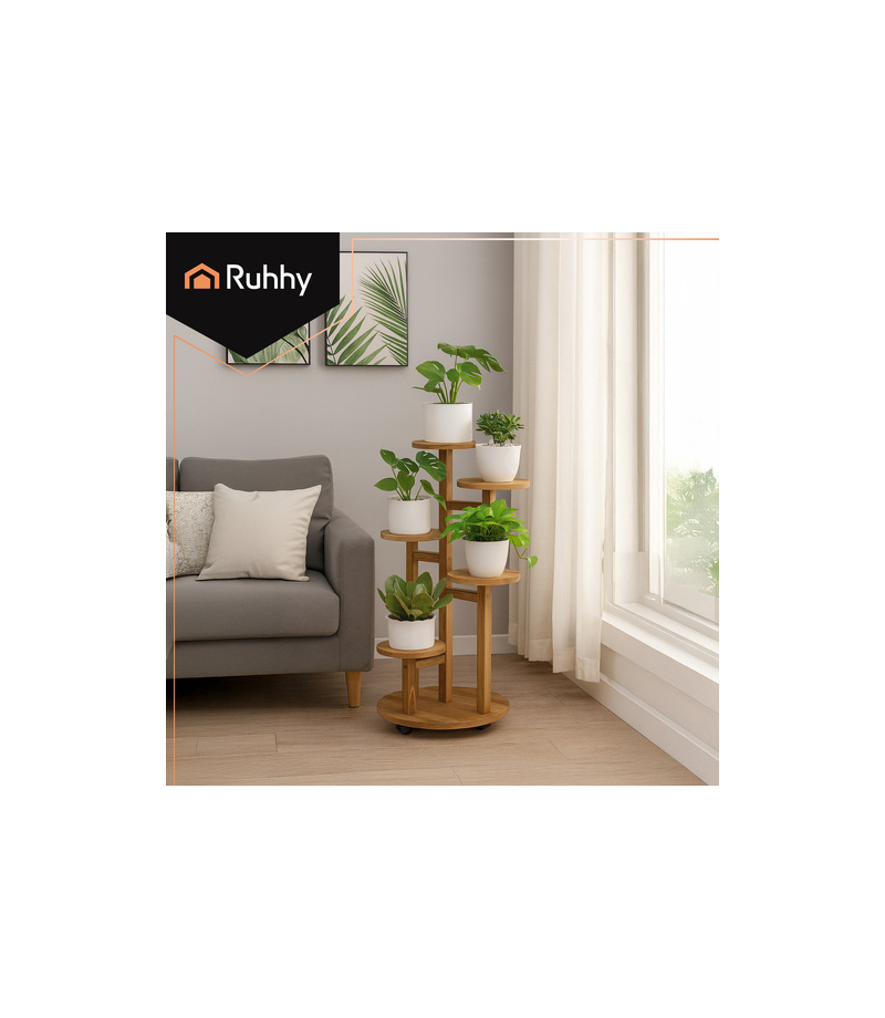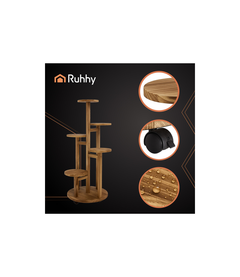 Stylowy i funkcjonalny kwietnik RUHHY z naturalnego drewna sosnowego pomieści, aż 7 doniczek na 6 poziomach . Idealny do salonu, na balkon lub taras – zapewnia efektowną ekspozycję roślin, oszczędność miejsca i łatwość w aranżacji . Dzięki kółkom z blokadą łatwo go przestawisz, gdzie tylko zechcesz.