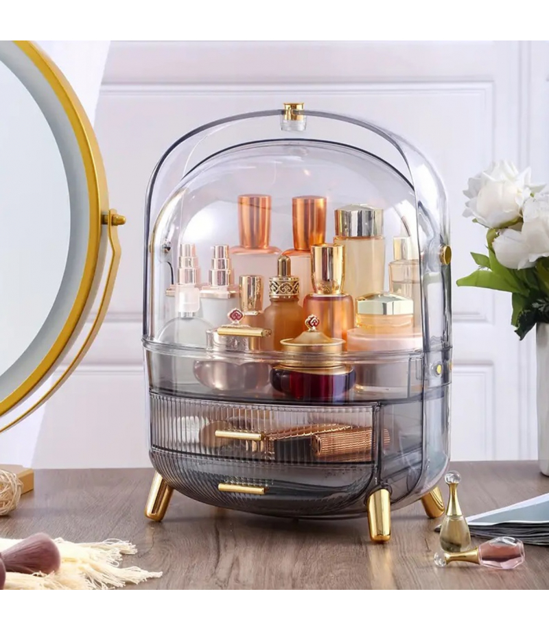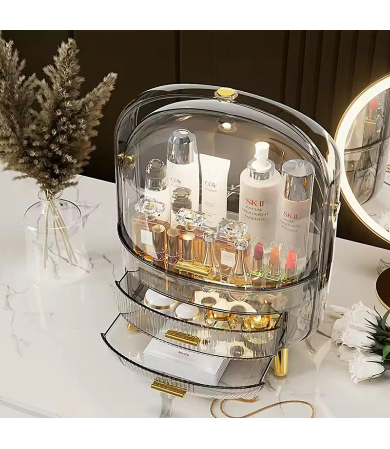 Praktyczny i estetyczny organizer do przechowywania kosmetyków. Wyposażony w pojemną komorę główną z przezroczystego akrylu oraz dwie dodatkowe szufladki do przechowywania drobiazgów. Wygodna i bardzo praktyczna rączka ułatwiająca przenoszenie szkatułki. Dioda LED wbudowana wewnątrz uchwytu zapewnia niesamowity efekt przy podświetlaniu zawartości.