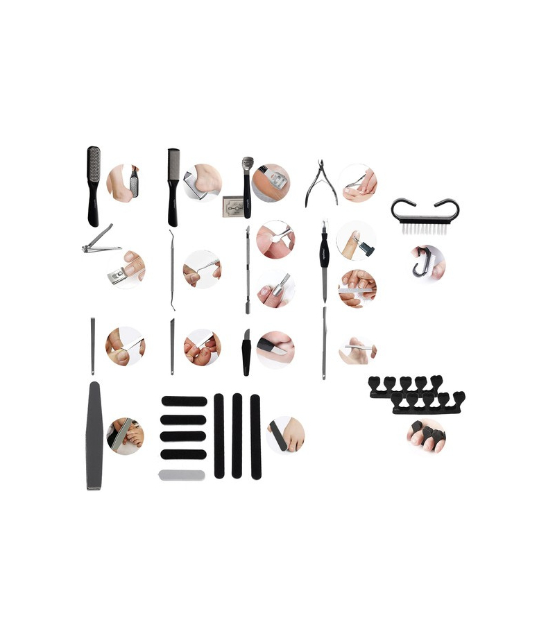 zawiera wszystkie potrzebne akcesoria - zestaw zawiera kompletny zestaw narzędzi do manicure i pedicure, w tym cążki, nożyczki, pilniki, radełka i inne akcesoria, które zaspokoją zarówno podstawowe, jak i zaawansowane potrzeby pielęgnacji paznokci