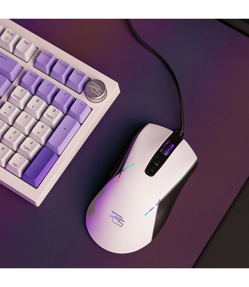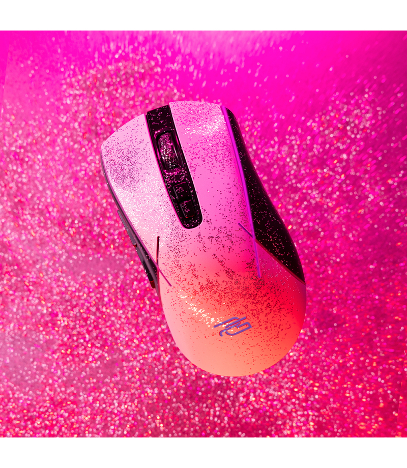Mysz wyróżnia się niezwykłym kształtem i podświetleniem LED z różnymi trybami. Akcesorium idealnie wpasuje się w Twoje środowisko gamingowe, podkreślając nowoczesność i futuryzm.