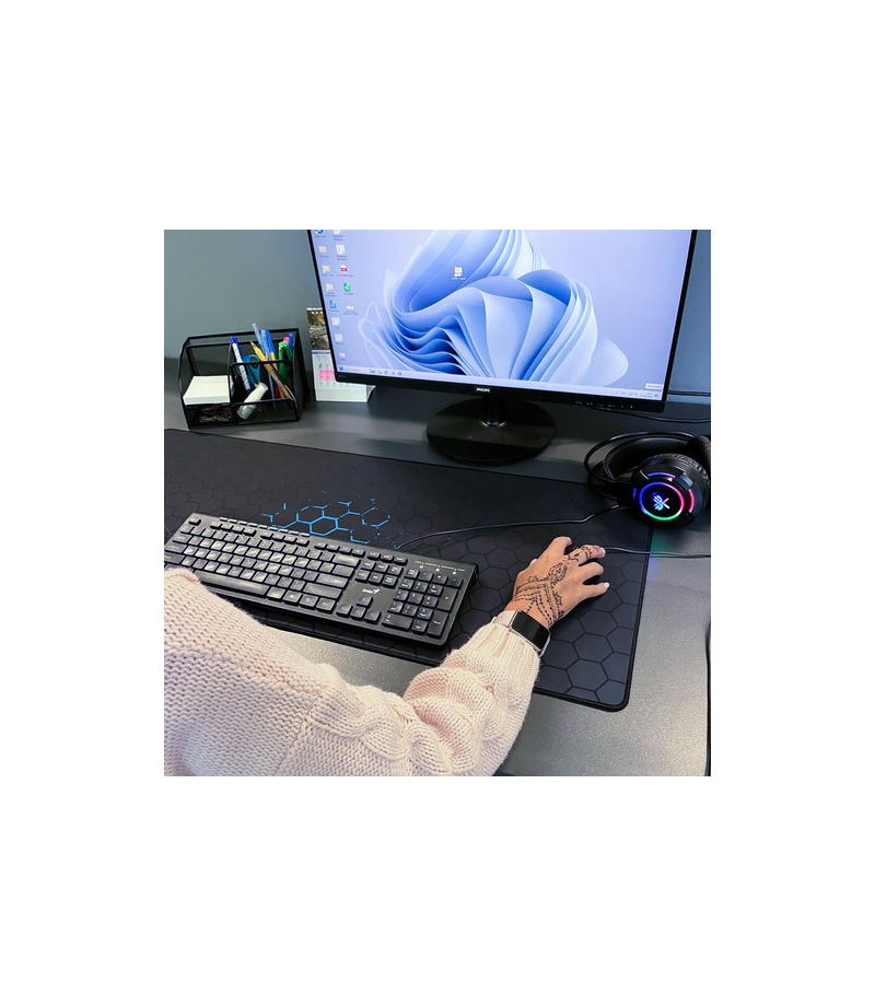 DUŻA PODKŁADKA NA BIURKO POD MYSZ I KLAWIATURĘ WODOODPORNA 90 x 40 cm XXL DUŻA POWIERZCHNIA ROBOCZA I WYGODA UŻYTKOWANIA - podkładka XXL zapewnia wystarczająco dużo miejsca na jednoczesne umieszczenie myszki i klawiatury , co umożliwia swobodne ruchy myszką bez obaw o jej przesunięcie poza obszar podkładki. Można na niej także umieścić inne przedmioty, takie jak notatniki, długopisy, czy kubek z napojem, co pomaga w organizacji biurka. WODOODPORNOŚĆ - wodoodporna powierzchnia...