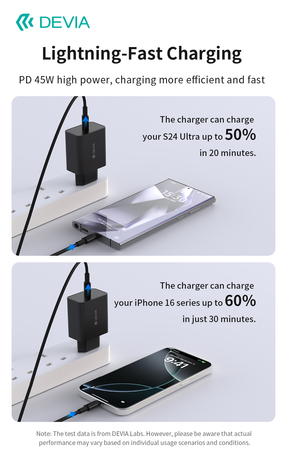 Devia ładowarka sieciowa Rocket PD 45W 1x USB-C czarna TFO BRA014355 Moc, na której możesz polegać – w stylowej, czarnej odsłonie. Devia Rocket PD 45W to wydajna ładowarka sieciowa z portem USB-C, idealna do szybkiego ładowania nowoczesnych urządzeń. Obsługuje technologię Power Delivery, co oznacza, że z łatwością naładuje smartfony, tablety, a nawet laptopy kompatybilne z USB-C. Dzięki inteligentnemu systemowi zarządzania energią ładowanie jest nie tylko szybkie, ale i...