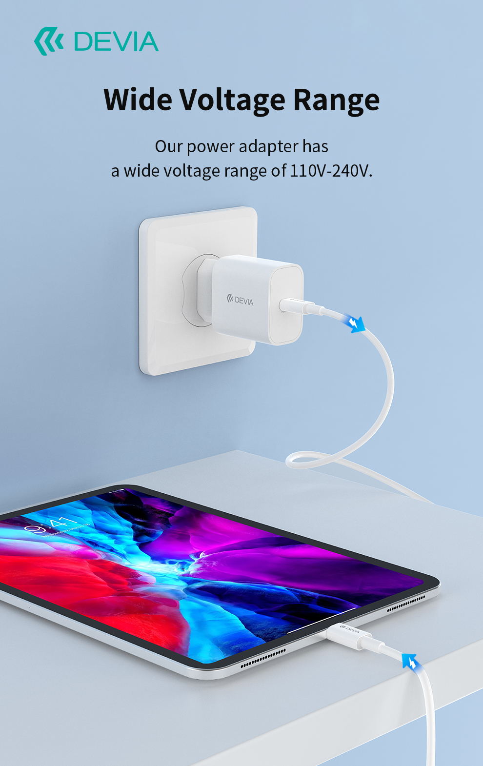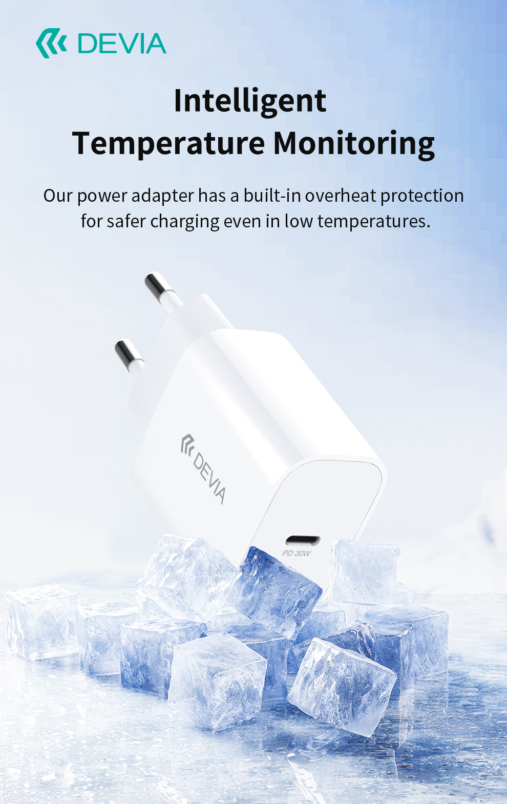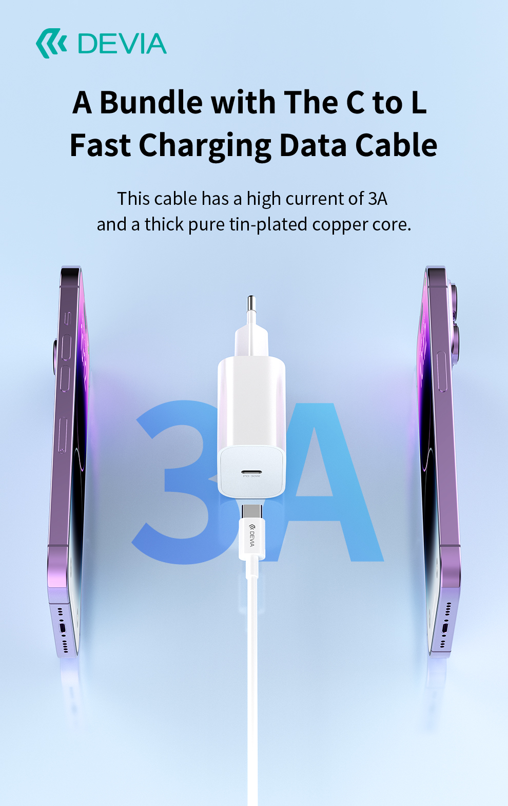 Devia ładowarka sieciowa Smart PD GaN 30W 1x USB-C biała + kabel USB-C - Lightning TFO BRA014308 Ładowarka o mocy 30 W w zestawie z kabem 3 A USB-C - Lightning o długości 1 m (ładowanie oraz transmisja danch) z technologią GaN. Wspiera ładowanie smartfonów, słuchawek, tabletów i innych urządzeń dostępnych na rynku. Rozmiar ładowarki jest niewielki. Ładowarka jest trwała, zachwyca...