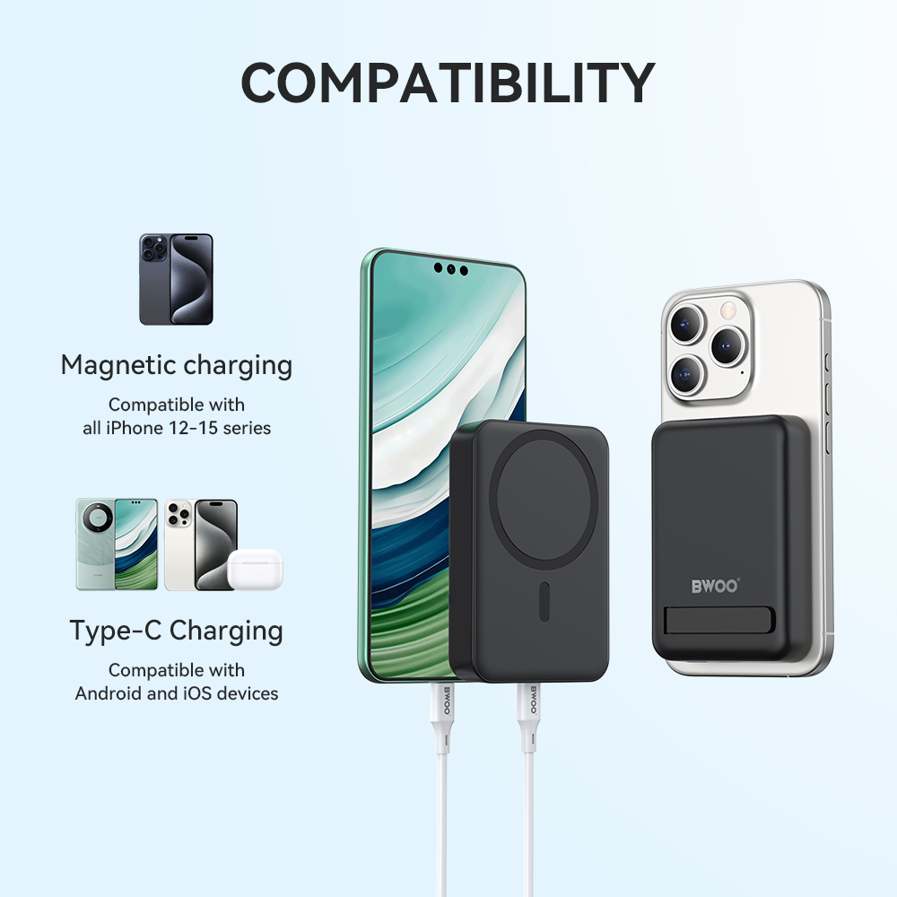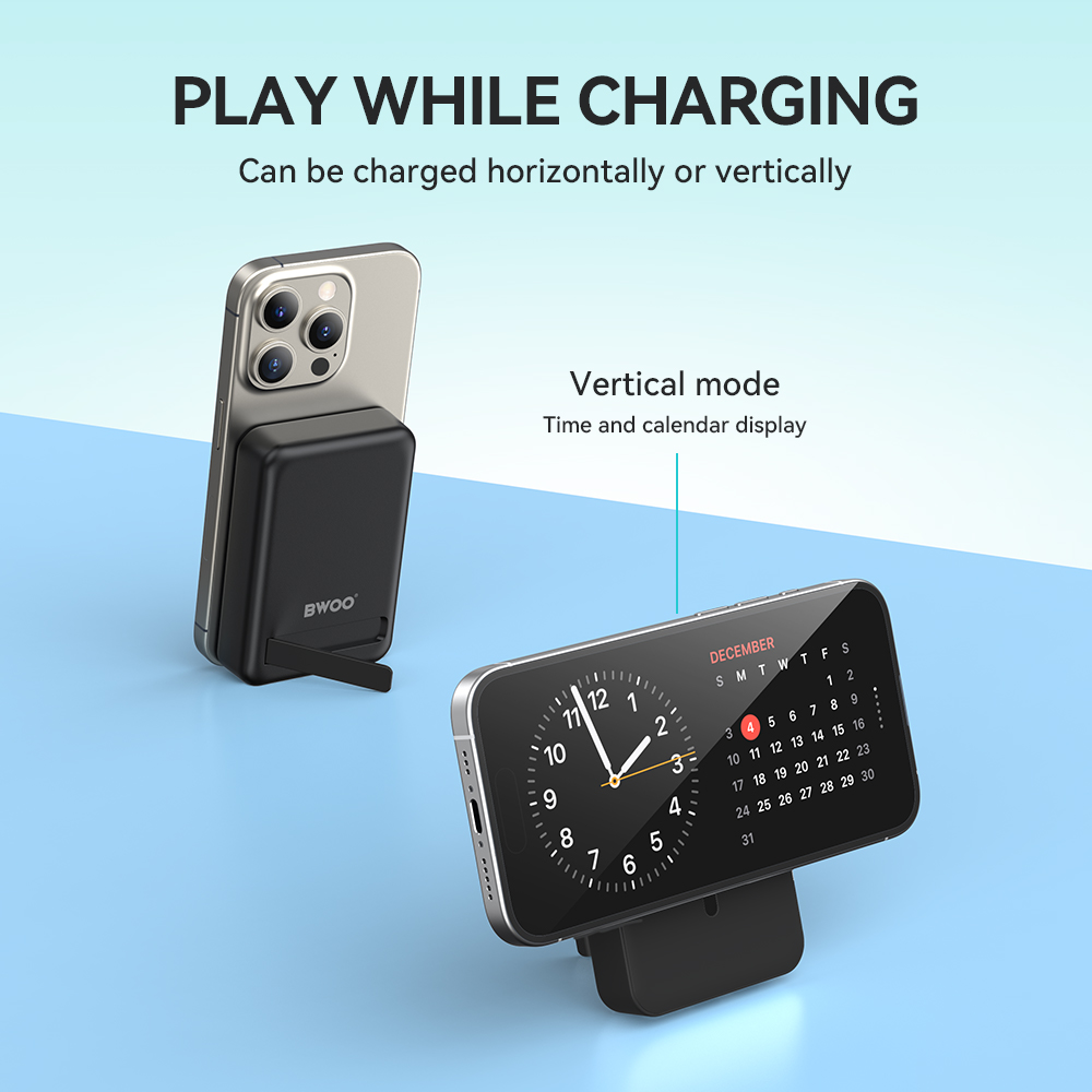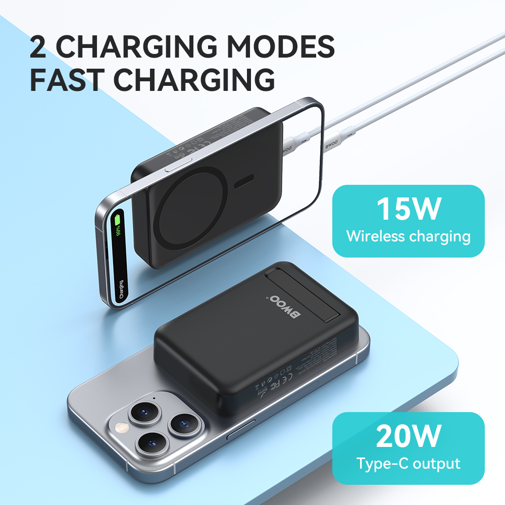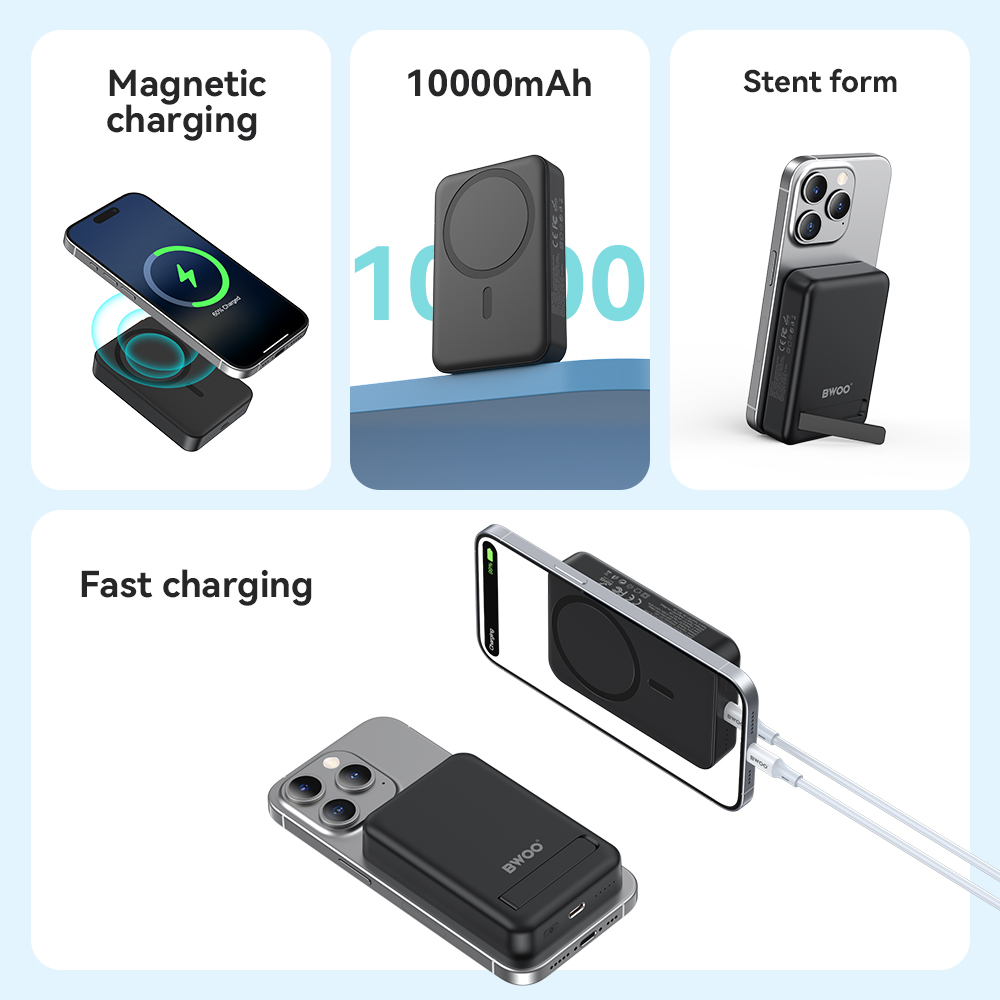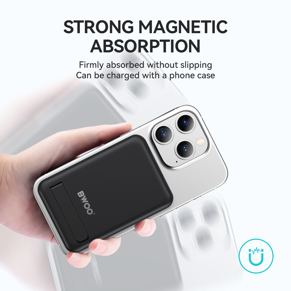 BWOO Power bank 20W 10000 mAh, czarny TFO GSM188867 Ten magnetyczny bezprzewodowy powerbank o pojemności 10000 mAh zapewnia wystarczającą ilość energii, aby utrzymać Twoje urządzenia naładowane przez cały dzień.Kompaktowa konstrukcja sprawia, że łatwo mieści się w kieszeni lub torbie, co czyni go idealnym do użytku w podróży.Powerbank kompatybilny z technologią MagSafe z wbudowaną podstawką wyposażony jest w składany uchwyt, który umożliwia ustawienie urządzenia w pionie lub...