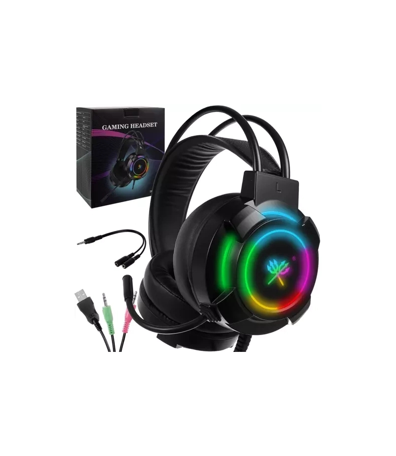SŁUCHAWKI GAMINGOWE RGB DUNMOON CZYSTY DŹWIĘK - wysoka jakość dźwięku, bez żadnych zakłóceń – zarówno podczas gier, słuchania muzyki, jak również podczas rozmów telefonicznych. Nauszne słuchawki w półotwartej konstrukcji bez problemu wygłuszają dźwięk dookoła i pozwalają na pełne skupienie na grze. Na lewej nausznicy znajduje się pokrętło, które umożliwia regulację głośności dźwięku. MIKROFON NA ELASTYCZNYM PAŁĄKU – można go ustawić na dowolnej wysokości, tak by odbiorca mógł w...