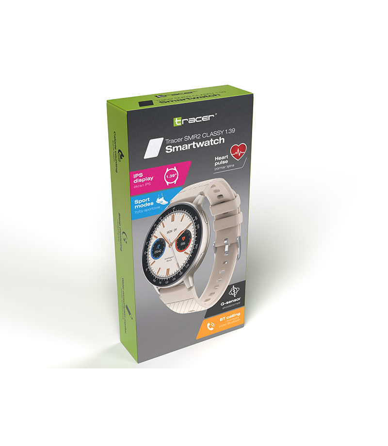 SMR2 Classy 1.39 to elegancki smartwatch, który łączy w sobie szyk, nowoczesność oraz praktyczność. Najwyższy czas aby spróbować niezwykle wyrazistego ekranu IPS we własnym zegarku. Wielkość wyświetlacza 1,39 cala i rozdzielczość 360x360 pikseli czyni zegarek Twój zegarek niezwykle wyrazistym gadżetem. Ostrość i kontrast kolorów pozwala na doskonałą czytelność wszelkich informacji (godziny, informacji z aplikacji) wyświetlanych na ekranie. -1.39IPS -BT 5.2BLE...
