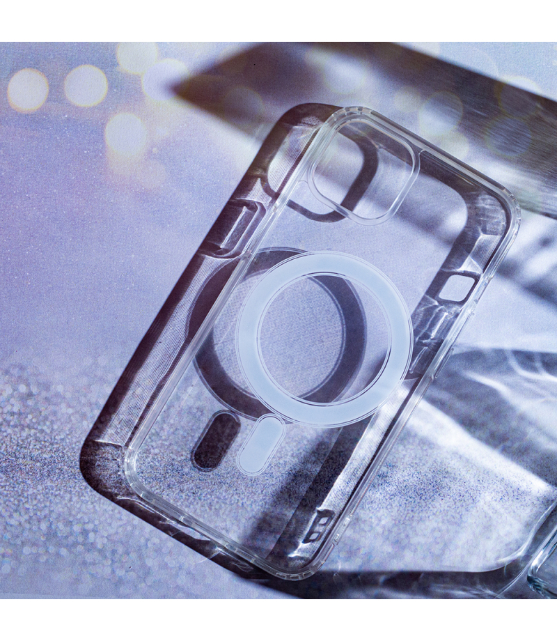 Nakładka Anti Shock 1,5 mm Mag do iPhone 13 Pro Max 6,7" transparentna Nakładka Anti Shock MagSafe to estetyczny produkt wysokiej jakości. Cała seria Anti Shock wyróżnia się wzmocnionymi narożnikami i zwiększoną grubością do 1,5 mm. Zastosowany materiał TPU i grubość nakładki gwarantują większą ochronę telefonu przed wstrząsami i zarysowaniem. Nakładka jest w pełni przezroczysta. Dodatkowa chropowata warstwa wewnętrzna zapobiega zbieraniu się wilgoci i przywieraniu nakładki do obudowy...
