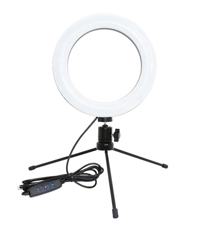 Doskonały zestaw oświetleniowy dla każdego miłośnika selfie! Lampa pierścieniowa LED z możliwością zmiany barwy bieli (zimna / ciepła / neutralna). W komplecie z rozkładanym statywem trójnożnym (tripod). Zdecydowanie jest to fotograficzne must have! Niezbędne wyposażenie każdego domowego studia foto. Zapewni odpowiednie warunki oświetleniowe dla każdego zdjęcia i ujęcia. Budowa pierścieniowa lampy pozwala na doskonałe i równomierne doświetlenie przestrzeni roboczej i fotografowanych osób lub przedmiotów. Wspaniałe rozwiązanie które sprawdzi się w każdych warunkach i w każdym studio. Dzięki swej lekkości i mobilności może być z powodzeniem użytkowana również na zewnątrz. Zastosowanie energooszczędnych diod LED nie wymaga zasilania z sieci elektrycznej, wystarczy zwykły port USB bądź powerbank.