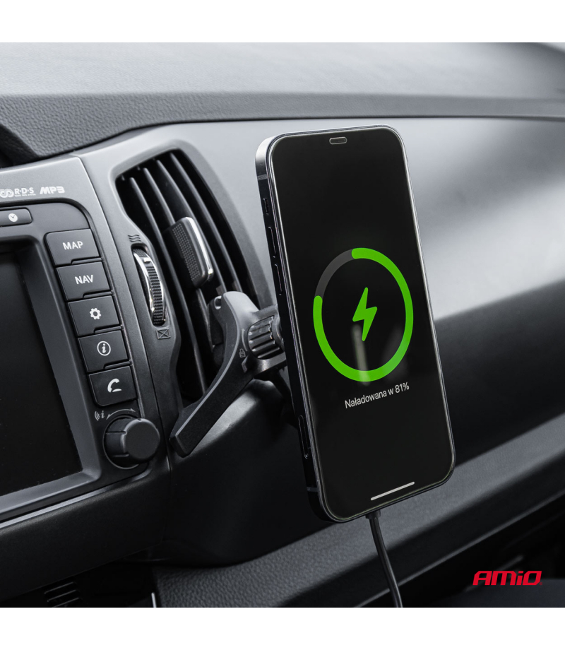 Uchwyt do samochodu na telefon z ładowarką indukcyjną do kratki my mag 15w amio-03770 AMiO AMI-03770