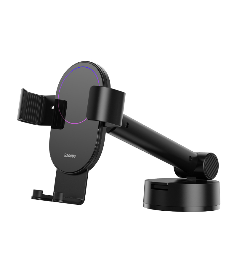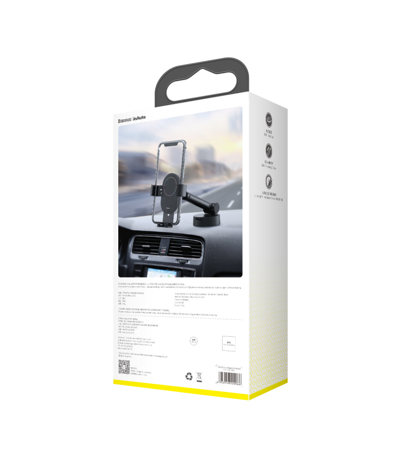 Baseus Simplism to uchwyt grawitacyjny z przyssawką. Idealnie trzyma się deski rozdzielczej. Działa na zasadzie ciążenia ziemskiego, zaciska się po włożeniu telefonu. Można go obsługiwać jedną ręką.