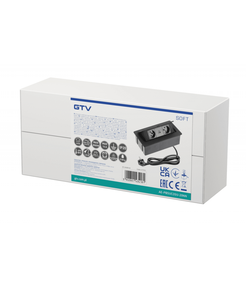 Producent: GTV Kod producenta: AE-PBSUC2GU-20NN Kompaktowa konstrukcja idealnie sprawdzi się w przypadku braku miejsca na standardowy rozgałęziacz. Wszechstronne zastosowanie pozwala na instalację np. w blacie biurka, blacie kuchennym czy stole warsztatowym. Przedłużacz pozwala zachować ład i porządek w każdym biurze, kuchni, a nawet w warsztacie. Satynowe wykończenie nadaje mu elegancji i jest przyjemne w dotyku. Sama instalacja w blacie jest banalnie prosta. Produkt dostarczany jest wraz z przewodem zasilającym o długości 1,5 metra./p> Parametry techniczne Długość przewodu z wtyczką [m] 1,5 Gniazdo: USB A+C Kolor czarny Maksymalne dopuszczalne obciążenie [W] 3600 Stopień ochrony IP 20 Zasilanie napięciem [V, Hz] 220-240, AC, 50-60 Więcej szczegółów