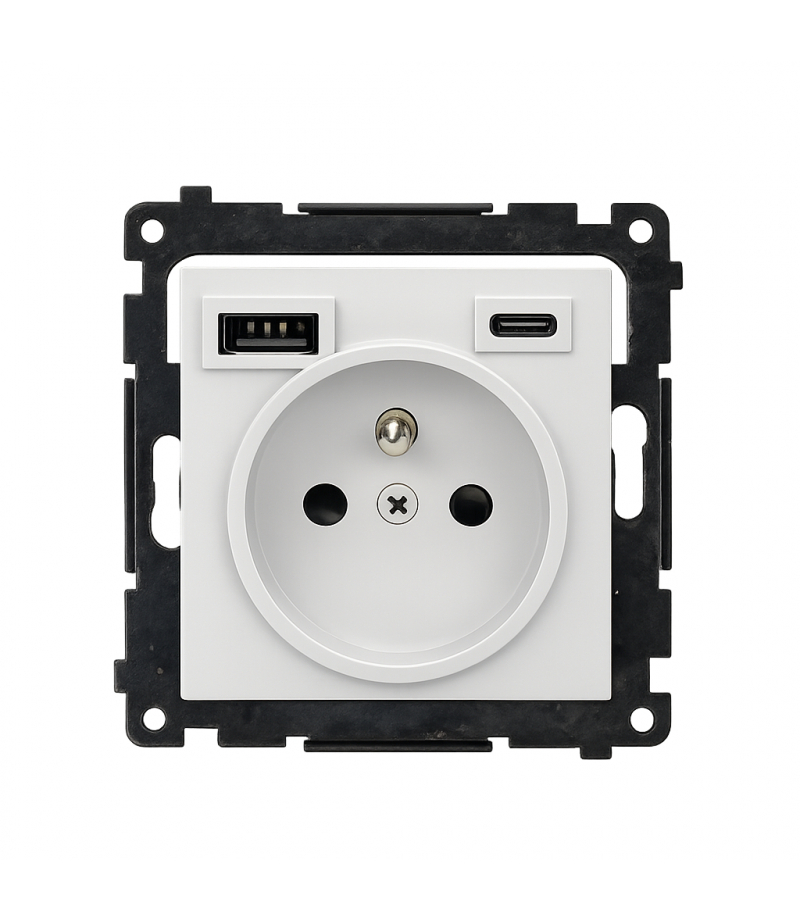 Gniazdo + USB C+A szary Seria Simon 55 Nazwa produktu/Rodzaj gniazdo z ładowarką USB Kolor jasnoszary mat RAL (zbliżony) RAL 7047 Typ produktu moduł Prąd znamionowy 16A Napięcie znamionowe 230V Rodzaj podłączenia / Typ zacisku zaciski śrubowe...