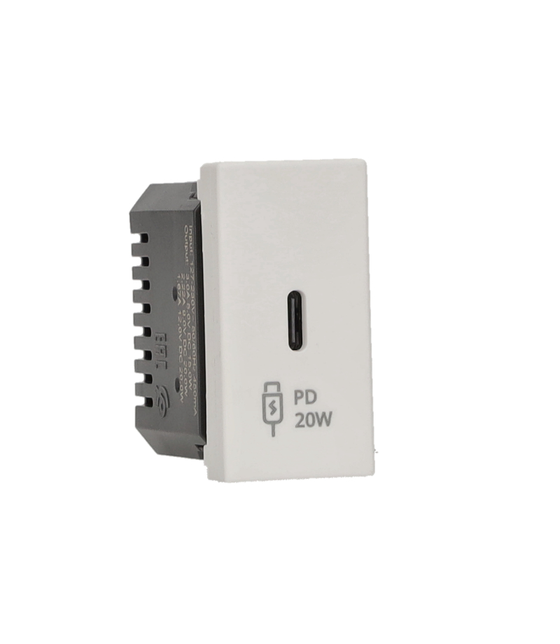 Ładowarka USB, K45, 5V, DC, 3,1A, 45×22,5mm, biały, Maksymalna moc ładowania: 20W, USB: A Ładowarka K45 22,5x45 USB C 20W QC gniazdo typ C czysta biel Seria: K45 Nazwa produktu/Rodzaj: ładowarka USB Kolor: biały Prąd znamionowy: 3.1A Napięcie znamionowe: 5V Rodzaj podłączenia / Typ zacisku: zaciski śrubowe Stopień ochrony IP: IP20 Uwagi: konserwacja - użyj miękkiej, suchej szmatki. Nie używaj ściernych szmatek ani środków czyszczących...
