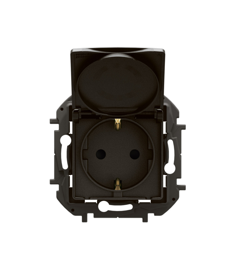 Gniazdo Schuko 2P+Z z przesłoną i klapką z serii Nowe Niloe umożliwia podłączenie urządzeń elektrycznych lub elektronicznych. Zaciski śrubowe. Mechanizm wymaga uzupełnienia o ramkę. Mechanizm z pazurkami. Solidny plastikowy uchwyt podtynkowy zapewnia wysoką sztywność i odporność. System nacięć ułatwia montaż w konfiguracji wielokrotnej, a uchwyty podtynkowe idealnie się łączą, co usprawnia instalację. Zwiększa bezpieczeństwo w domu, ponieważ styki elektryczne nie są dostępne, gdy wtyczka nie jest podłączona, nawet jeśli osłona nie jest zamontowana. Klapa otwiera się o maksymalnie 180°. Produkt przeznaczony jest wyłącznie do użytku wewnętrznego. Kolor - czarny matowy. Więcej szczegółów