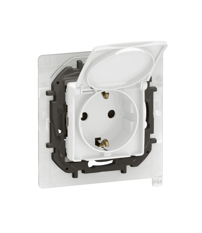 Wodoszczelne gniazdo Schuko 2P+Z z przesłoną z serii Nowe Niloe IP44 umożliwia podłączenie urządzeń elektrycznych lub elektronicznych. Do stosowania w pomieszczeniach mokrych (kuchnia, łazienka itp.).Stopień ochrony IP44: ochrona przed ciałami stałymi większymi niż 1 mm i ochrona przed strumieniami wody ze wszystkich kierunków. Zaciski automatyczne. Mechanizm z pazurkami. Mechanizm wymaga uzupełnienia o ramkę. Solidny plastikowy uchwyt podtynkowy zapewnia wysoką sztywność i odporność. System nacięć ułatwia montaż w konfiguracji wielokrotnej, a uchwyty podtynkowe idealnie się łączą, co usprawnia instalację. Produkt przeznaczony jest wyłącznie do użytku wewnętrznego. Kolor - biały błyszczący. Więcej szczegółów
