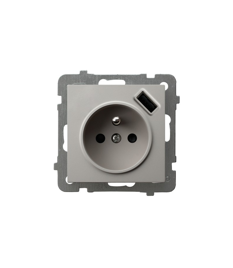 AS GP-1GZPUSB/m/82 Gniazdo pojedyncze z uziemieniem z przesłonami torów prądowych, z ładowarką USB Kaszmir Ospel Producent: OSPEL Seria: AS Osprzęt: Podtynkowy Kolor: Kaszmir Nr katalogowy: GP-1GZPUSB/m/82 EAN: 5906729037615 Dane techniczne: 16A/230~,USB 5V/2,1A, IP-20, zac.bezgw. Uwagi: