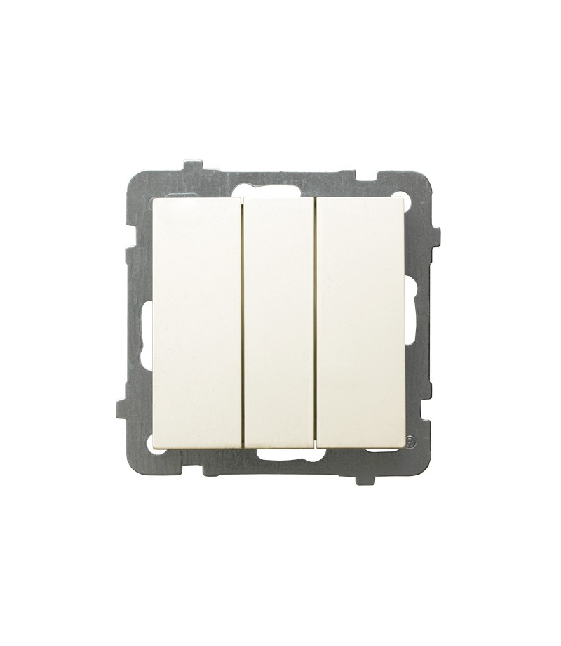 AS ŁP-24G/m/27 Łącznik potrójny zwierny Ecru Ospel Producent: OSPEL Seria: AS Osprzęt: Podtynkowy Kolor: Ecru Nr katalogowy: ŁP-24G/m/27 EAN: 5906729008011 Dane techniczne: 10AX250~, IP-20 zaciski bezgwintowe Uwagi: