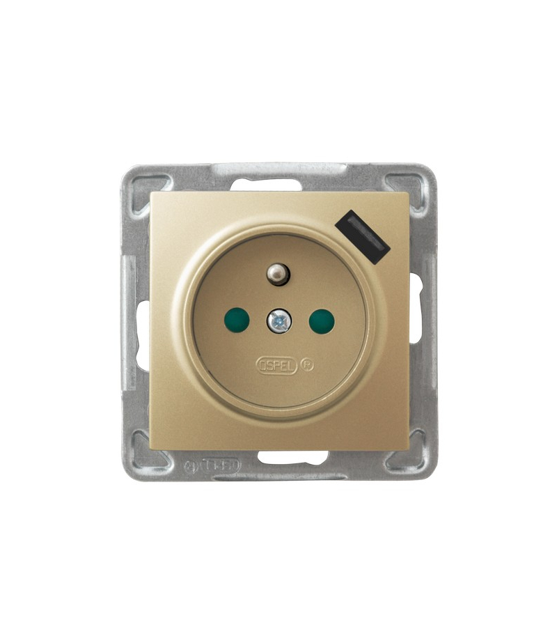 IMPRESJA GP-1YZPUSB/m/28 Gniazdo pojedyncze z uziemieniem z przesłonami torów prądowych, z ładowarką USB Złoty Metalik Ospel Producent: OSPEL Seria: IMPRESJA Osprzęt: Podtynkowy Kolor: Złoty Metalik Nr katalogowy: GP-1YZPUSB/m/28 EAN: 5907577494674 Dane techniczne: 16A/230~,USB 5V/2,1A, IP-20, zac.bezgw. Uwagi: