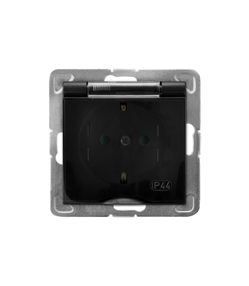 IMPRESJA GPH-1YSP/m/33/d Gniazdo bryzgoszczelne z uziemieniem schuko IP-44 z przesłonami torów prądowych wieczko przezroczyste Czarny Metalik Ospel Producent: OSPEL Seria: IMPRESJA Osprzęt: Podtynkowy Kolor: Czarny Metalik Nr katalogowy: GPH-1YSP/m/33/d EAN: 5906729010540 Dane techniczne: 16A/250~,...