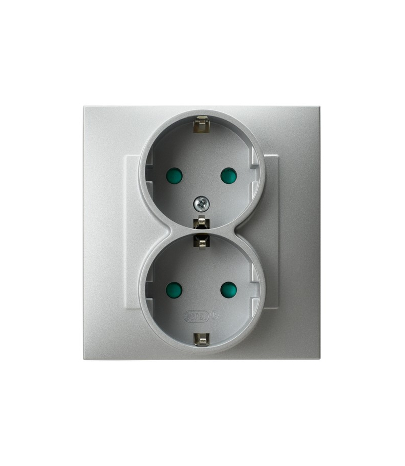 SZAFIR GP-2ZSP/18 Gniazdo podwójne z uziemieniem schuko z przesłonami torów prądowych, kompletne z ramką Srebro Ospel Producent: OSPEL Seria: SZAFIR Osprzęt: Podtynkowy Kolor: Srebro Nr katalogowy: GP-2ZSP/18 EAN: 5906729012704 Dane techniczne: 16A 250V~, IP20, zaciski gwintowe...