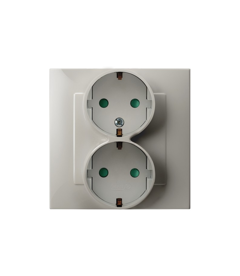SZAFIR GP-2ZSP/83 Gniazdo podwójne z uziemieniem schuko z przesłonami torów prądowych, kompletne z ramką Kaszmirowy beż Ospel Producent: OSPEL Seria: SZAFIR Osprzęt: Podtynkowy Kolor: Kaszmirowy beż Nr katalogowy: GP-2ZSP/83 EAN: 5906729036168 Dane techniczne: 16A 250V~, IP20, zaciski gwintowe...