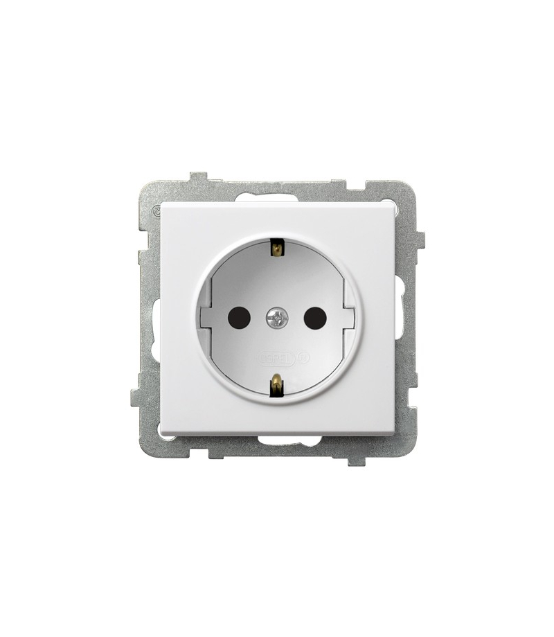 SONATA GP-1RS/m/75 Gniazdo pojedyncze z uziemieniem schuko Biały Mat Ospel Producent: OSPEL Seria: SONATA Osprzęt: Podtynkowy Kolor: Biały Mat Nr katalogowy: GP-1RS/m/75 EAN: 5906729023892 Dane techniczne: 16A/250~, IP-20, zaciski gwintowe Uwagi: