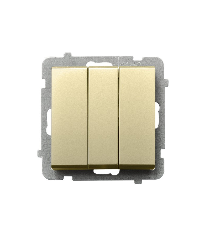 SONATA ŁP-24R/m/39 Łącznik potrójny zwierny Szampański Złoty Ospel Producent: OSPEL Seria: SONATA Osprzęt: Podtynkowy Kolor: Szampański Złoty Nr katalogowy: ŁP-24R/m/39 EAN: 5906729007977 Dane techniczne: 10AX/250~, IP-20 zaciski bezgwintowe Uwagi: