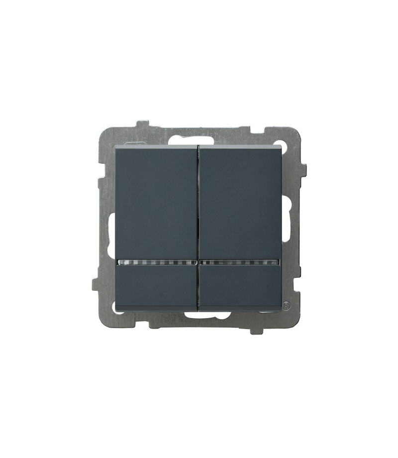 SONATA ŁP-2RS/m/73 Łącznik dwugrupowy świecznikowy z podświetleniem niebieskim Szary grafit Ospel Producent: OSPEL Seria: SONATA Osprzęt: Podtynkowy Kolor: Szary grafit Nr katalogowy: ŁP-2RS/m/73 EAN: 5906729039435 Dane techniczne: 16AX250~, IP-20, zaciski bezgwintowe Uwagi: