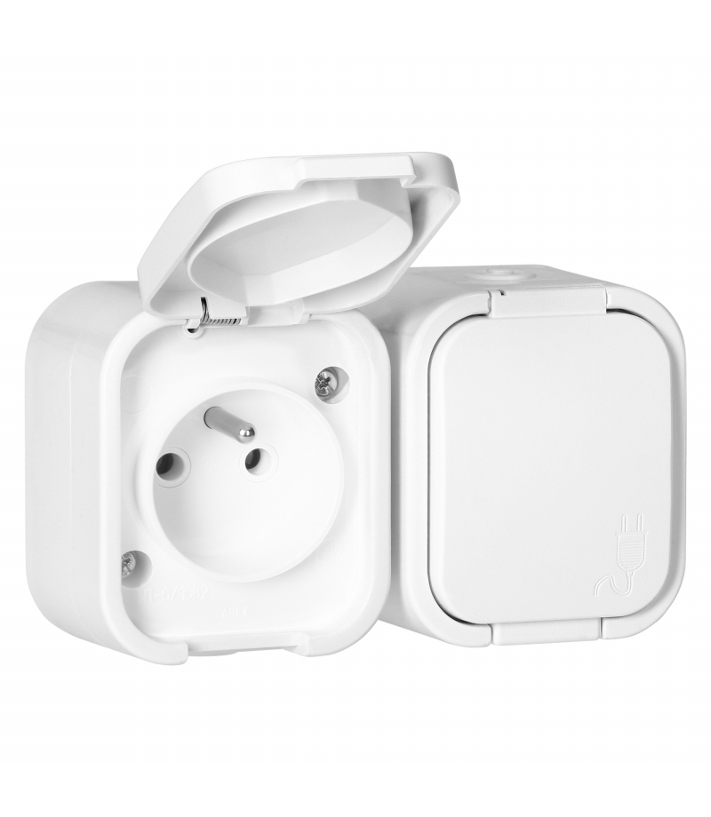 Gniazdo natynkowe podwójne 2×2P+Z Orno OR‑OE‑7806/W | IP54 | bryzgoszczelne | B2 | biały Seria gniazd i łączników B2 o stopniu ochrony IP54 przed kurzem i wilgocią. Ponadczasowy kształt i solidna obudowa to cechy wyróżniające tę kolekcję. Idealnie nadaje się do montażu w obiektach przemysłowych oraz gospodarstwach domowych. Łączniki tej serii wyposażone są w szybkozłącza, natomiast gniazda w tradycyjne połączenia śrubowe. Podwójne gniazdo bryzgoszczelne z klapką, typu francuskiego,...
