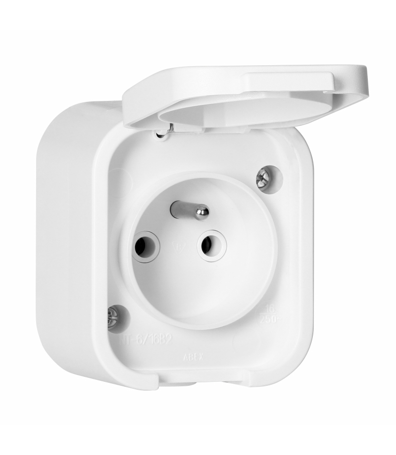 Gniazdo natynkowe pojedyncze 2P+Z Orno OR‑OE‑7805/W | IP54 | bryzgoszczelne | B2 | biały Seria gniazd i łączników B2 o stopniu ochrony IP54 przed kurzem i wilgocią. Ponadczasowy kształt i solidna obudowa to cechy wyróżniające tę kolekcję. Idealnie nadaje się do montażu w obiektach przemysłowych oraz gospodarstwach domowych. Łączniki tej serii wyposażone są w szybkozłącza, natomiast gniazda w tradycyjne połączenia śrubowe. Pojedyncze gniazdo bryzgoszczelne z klapką, typu francuskiego,...