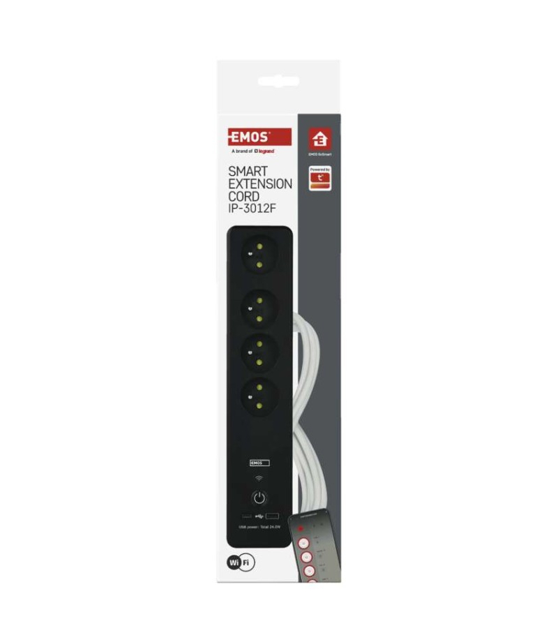 Przedłużacz GoSmart 2 m 4 gniazda z wyłącznikiem z USB biało-czarny PVC 1,5mm2 EMOS P1412SM Częstotliwość: 2,4 GHz WIFI Długość: 2 m Ilość gniazd: 4× 2P + PE Języki aplikacji: EN, CZ, SK, PL, DE, HU, SI, FR, + 60innych języków Kolor: biały/czarny Kompatybilność: EMOS GoSmart,Tuya,Lidl,Smartlifeotwarty system Maksymalne obciążenie: 3 680 W Materiał gniazda i wtyczki: tworzywo Napięcie: 250 V~ Obsługiwany OS: Android,...