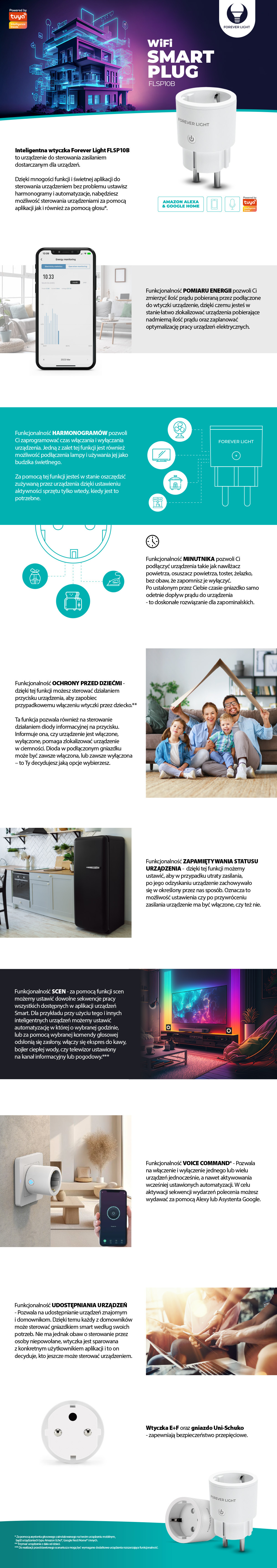 Gniazdo WiFi, Sieciowe, Smart, 240V 10A, FLSP10B Forever Light TFO RTV500005 Rodzaj produktu: gniazdo sieciowe smart Maksymalne natężenie prądu: 10 A Marka: Forever Light Kolor: biały Zakres częstotliwości: 100-240V~50/60Hz Maksymalna moc: 2 400 W Wymiary produktudł. x szer.x wys.: 57 x 57 x 85mm Wymiar opakowania (mm) dł. x szer.x wys.: 55 x 55 x 90mm Dodatkowe informacje: Wi-Fi 802.11b/b/g/n 2,4Ghz Temperatura...