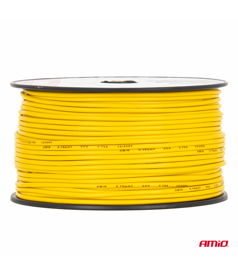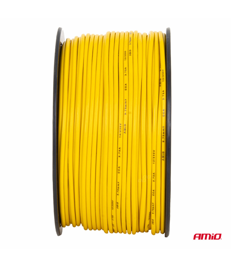 Przewód jednożyłowy żółty CCA 1x0.75mm2 100m 3.75A 12/230V AMIO-04447 Jednożyłowy przewód instalacyjny w technologii CCA (Copper Clad Aluminium), przeznaczony do lekkich instalacji elektrycznych niskiego i sieciowego napięcia. Przekrój 1x0.75 mm² umożliwia bezpieczną pracę przy prądzie do 3.75 A. Rolka 100 m zapewnia wygodne prowadzenie przewodów w mniejszych projektach, a żółty kolor izolacji ułatwia identyfikację przewodu w instalacji....