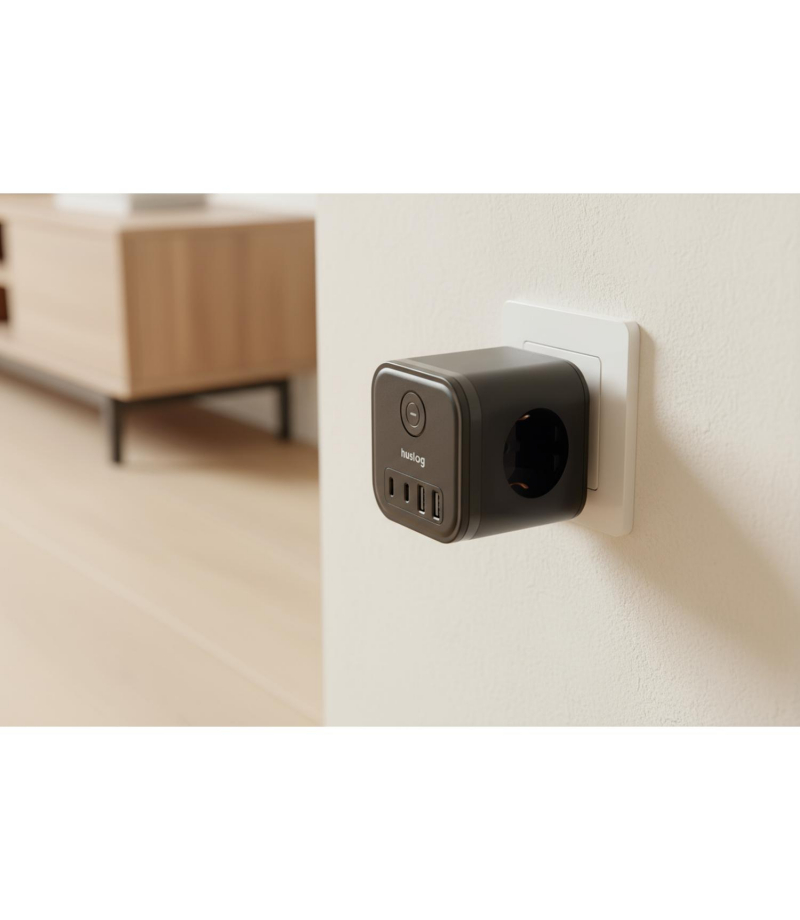 3 gniazda AC i 4 porty USB – wygoda i oszczędność miejsca. Zestawienie gniazd 230 V z portami USB (A i C) pozwala jednocześnie zasilać urządzenia i ładować smartfony.