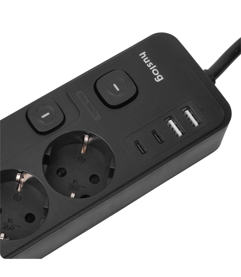 Huslog przedłużacz z 5 wyłącznikami TFO AGDAOHUS100110 4 gniazda Schuko – bezpieczne podłączenie kilku urządzeń. 4 porty USB – szybkie ładowanie mobilne. Plastik trudnopalny + miedź – bezpieczeństwo i trwałość. Podwójne sterowanie – główny i niezależny przełącznik. 4 gniazda Schuko – europejski standard bezpieczeństwa. Listwa z 4 gniazdami Schuko i uziemieniem pasuje do większości urządzeń w Europie. Zapewnia...