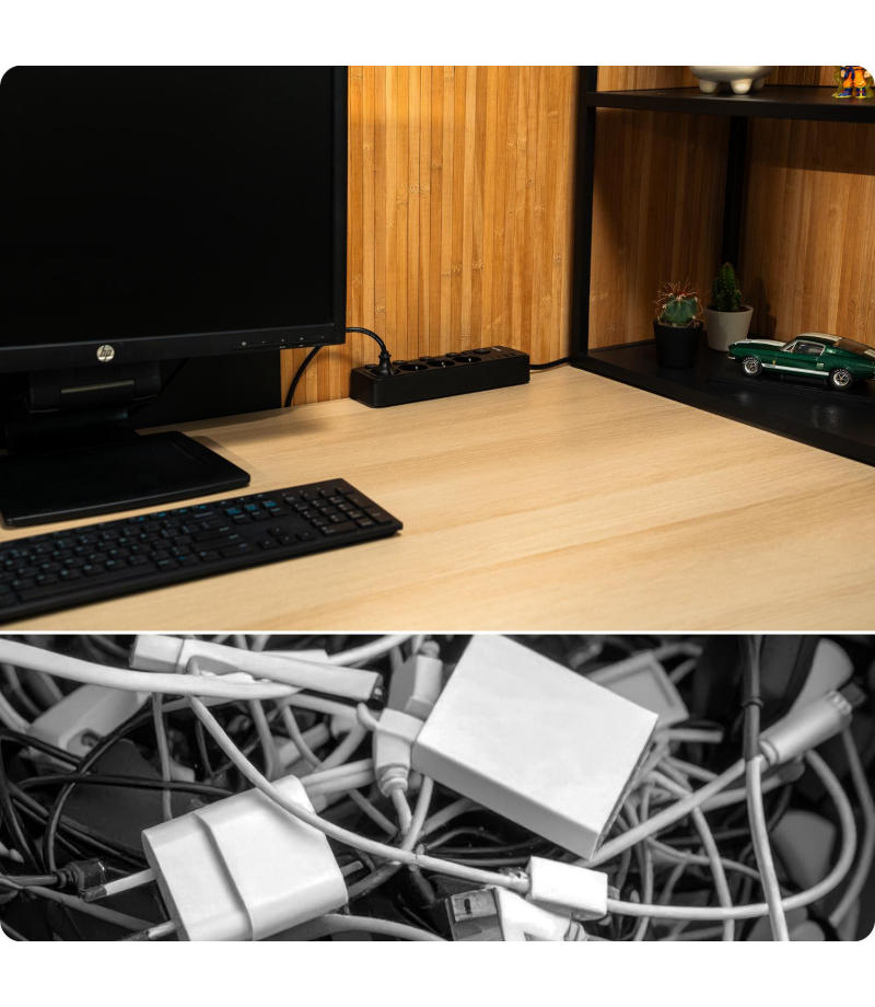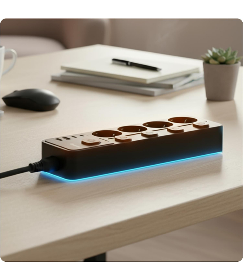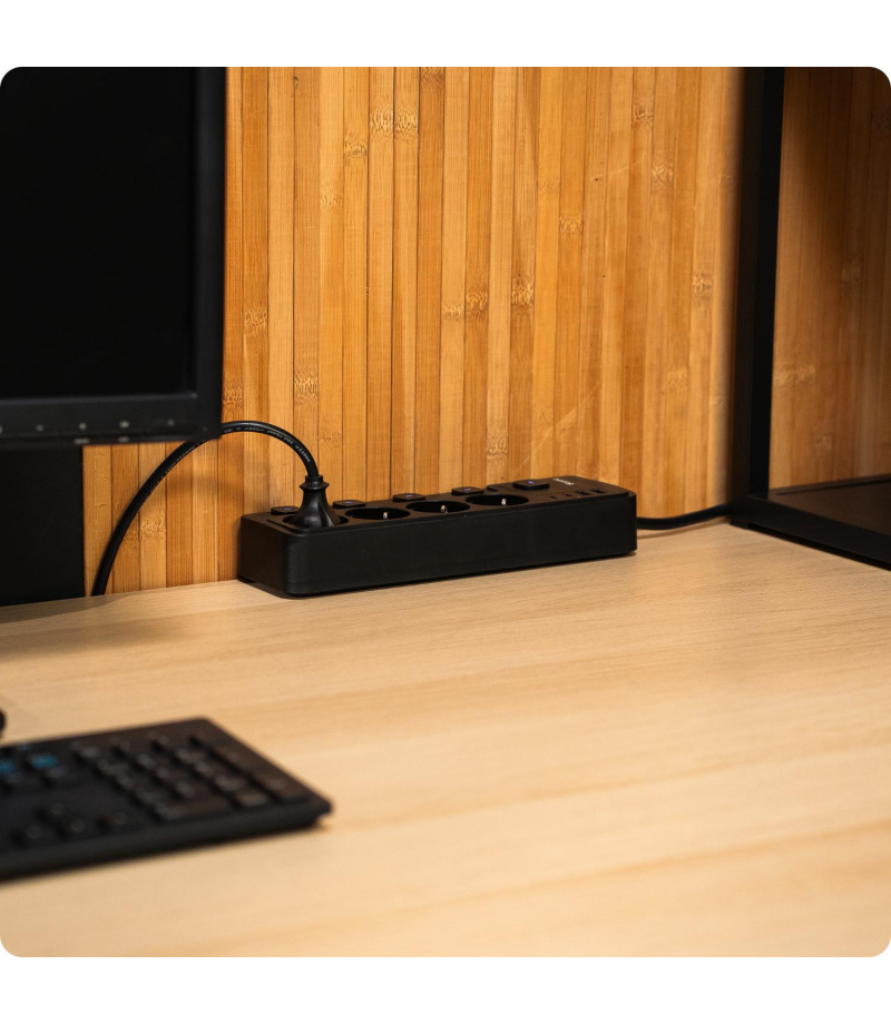 Kompaktowe wymiary – praktyczne rozwiązanie do każdego wnętrza. Smukła konstrukcja (255 × 74 × 40 mm) pozwala wygodnie ustawić listwę w dowolnym miejscu – na biurku, przy telewizorze czy w kuchni.