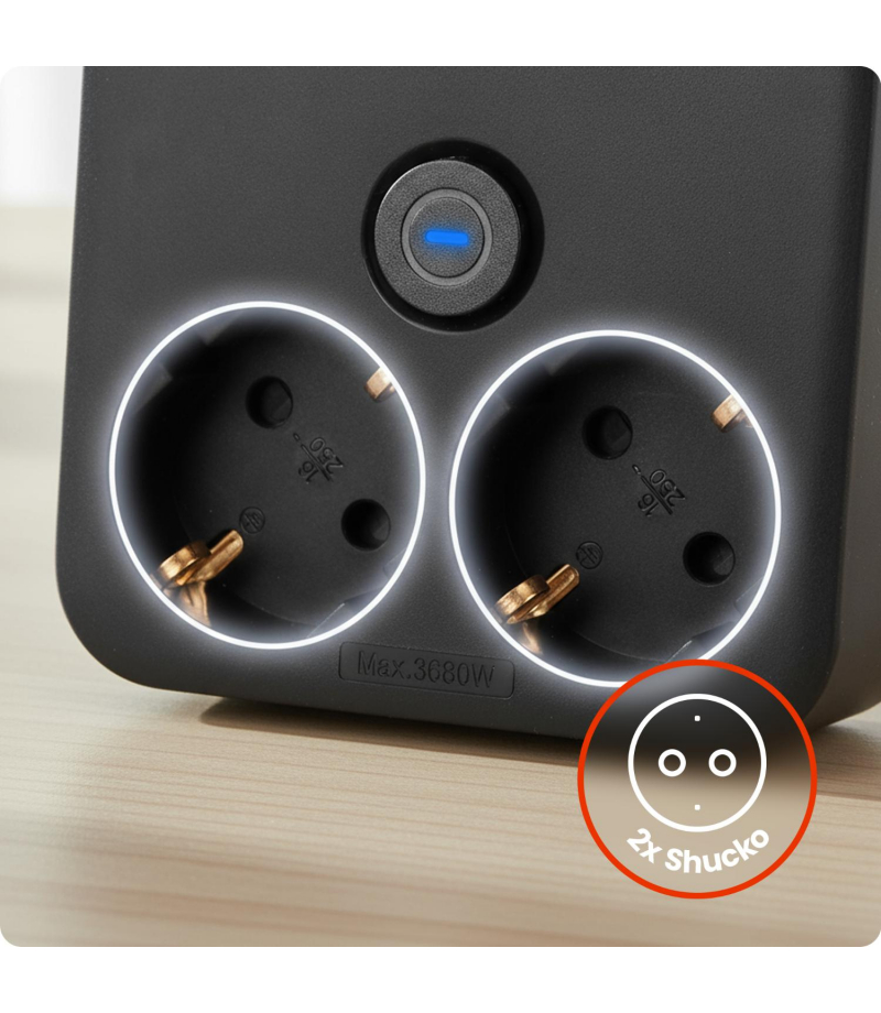 2 gniazda AC – szybki dostęp do energii. Kompaktowy przedłużacz z 2 gniazdami 230 V idealny do podłączenia lampki, laptopa czy małego AGD. Funkcjonalny w biurze, sypialni i podróży.