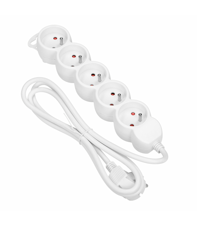 Przedłużacz 5-krotny 2P+Z, 5m H05VV-F 3x1.0mm2, Imax=10A, biały