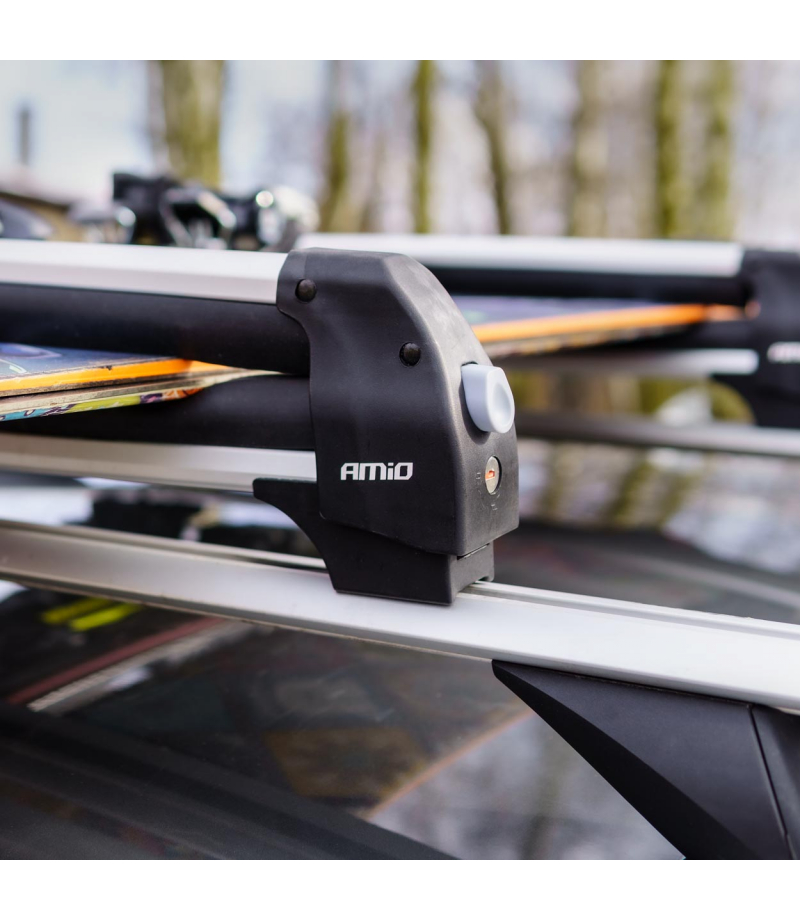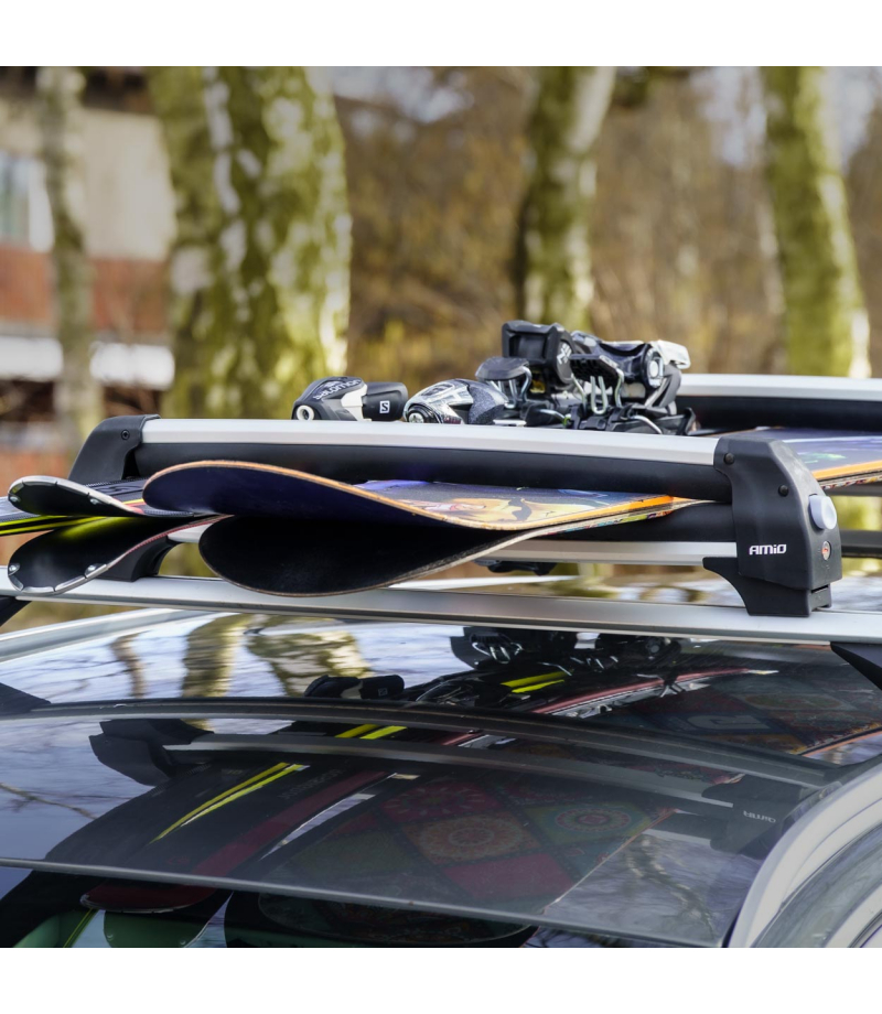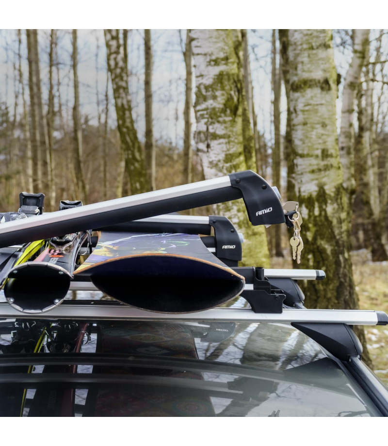 Aluminiowy uchwyt narciarski pozwoli na przewiezienie nawet 4 par nart lub 2 desek snowboardowych.