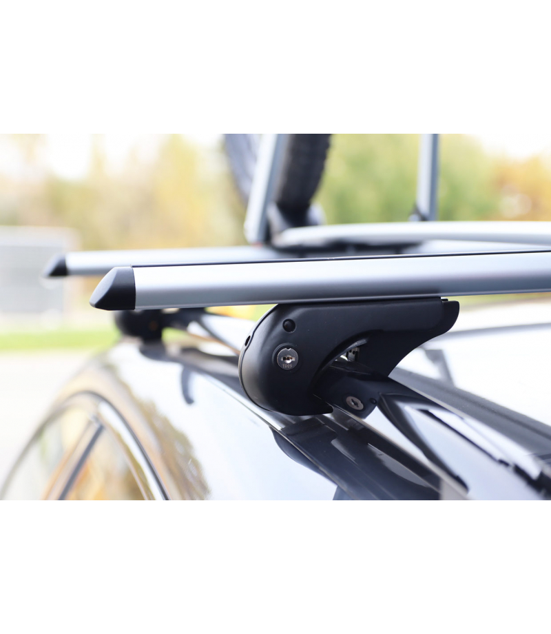 Lekki aluminiowy bagażnik bazowy. Wytrzymała konstrukcja, aerodynamiczny kształt oraz wysoka jakość użytych materiałów to główne zalety tego modelu. Duża praktyczność montażu umożliwia instalację wielu akcesoriów jednocześnie za pomocą obejmy lub wygodnych w użyciu wsuwek typu T. Bagażnik przeznaczony wyłącznie do montażu na standardowych (uniesionych) relingach samochodowych.