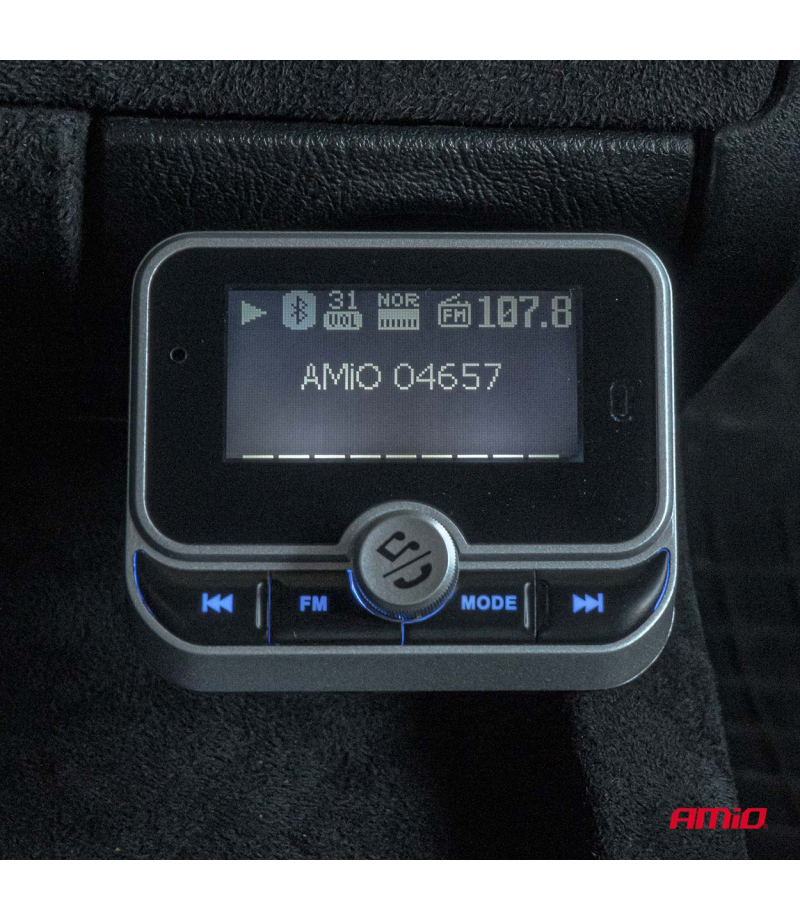 Transmiter samochodowy FM z pilotem 2×USB-A 12V 24VAMIO-04657 Wielofunkcyjny transmiter FM z modułem Bluetooth i pilotem zdalnego sterowania, umożliwiający bezprzewodowe odtwarzanie muzyki, prowadzenie rozmów w trybie głośnomówiącym oraz ładowanie urządzeń mobilnych. Idealny do samochodów pozbawionych fabrycznej obsługi Bluetooth. Cechy produktu: 2× port USB – ładowanie dwóch urządzeń jednocześnie lub...