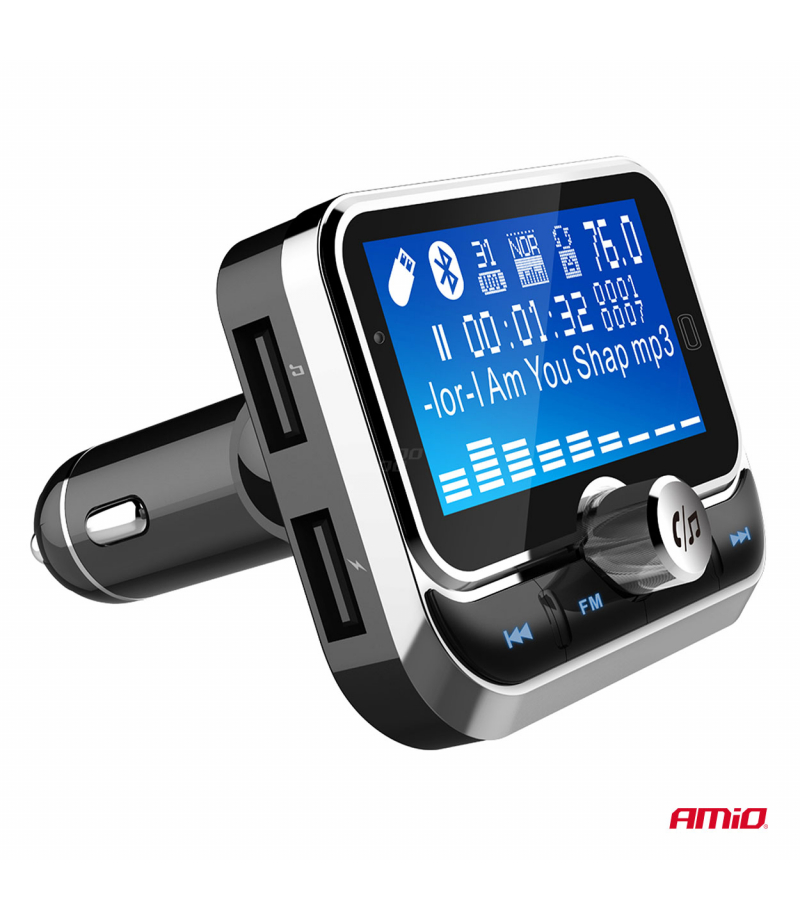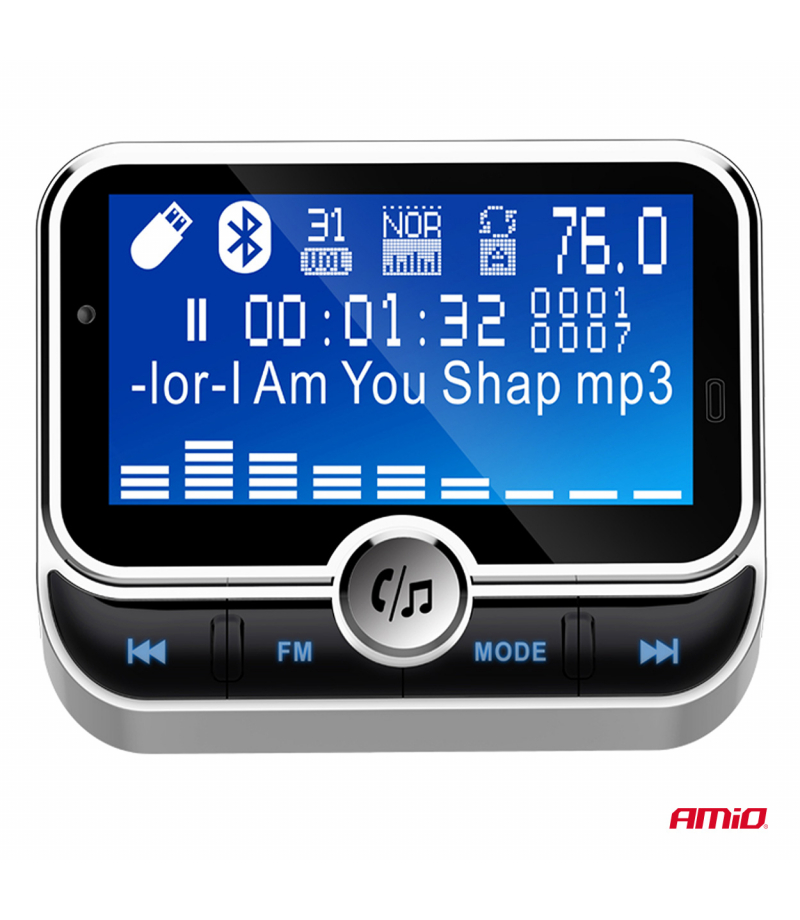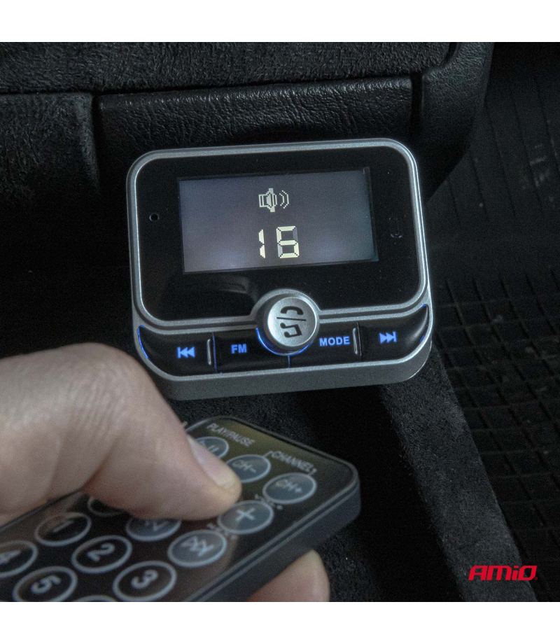 Wielofunkcyjny transmiter FM z modułem Bluetooth i pilotem zdalnego sterowania, umożliwiający bezprzewodowe odtwarzanie muzyki, prowadzenie rozmów w trybie głośnomówiącym oraz ładowanie urządzeń mobilnych. Idealny do samochodów pozbawionych fabrycznej obsługi Bluetooth.