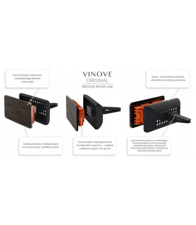 VINOVE - EKSKLUZYWNE PERFUMY SAMOCHODOWE Nowa marka perfum samochodowych, stworzona przez polskich pasjonatów we współpracy z francuskimi mistrzami sztuki perfumeryjnej i włoskimi projektantami oraz naukowcami. Do ich stworzenia zastosowano technologię XXI wieku. Wykorzystując wiedzę, otwartość i doświadczenie zespołu naukowców i wspólnie z nimi udało się skondensować zapachy w nowatorskim polimerze. Nadano mu taki kształt, by powietrze z wywietrzników samochodowych delikatnie...