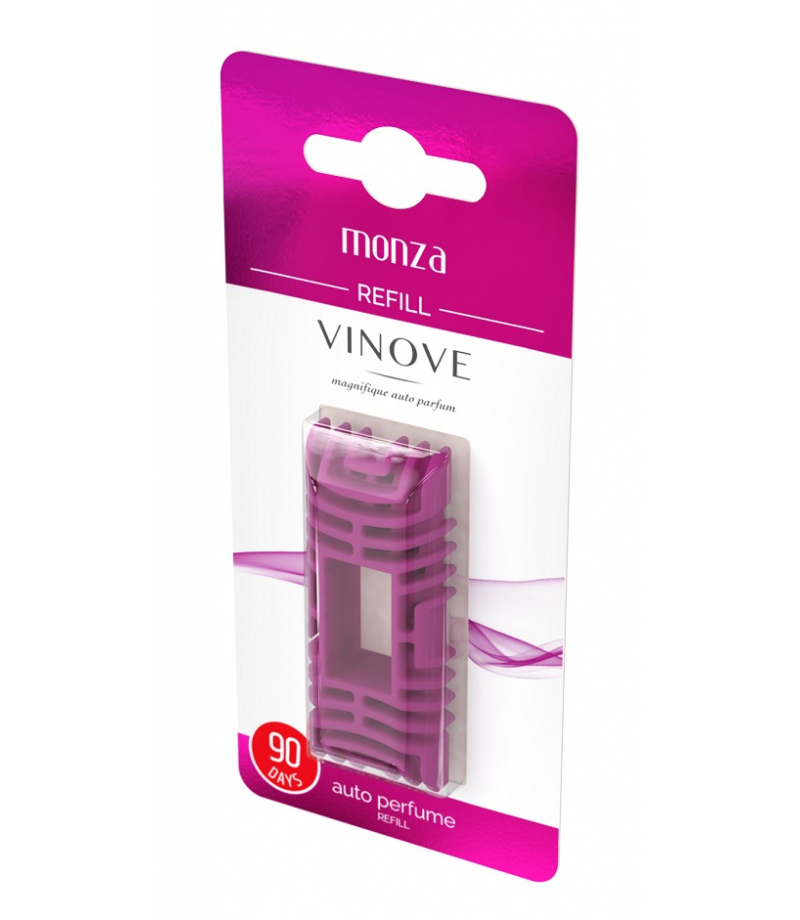 Wymienny wkład zapachowy Kolekcja Woman VINOVE zapach MONZA refill wkład na kratkę Monza to elektryzujący zapach kobiet błyskotliwych, kreatywnych i zdecydowanych. Aromat słodkiej obietnicy i dojrzałego seksapilu. Monza to połączenie sprzeczności, świeżości ananasa i brzoskwiń z bujnym bukietem amarantowych róż oraz słodyczą czekolady i karmelu. Nuta głowy: neroli, bergamotka, ananas, brzoskwinia Nuta serca: fiołek, jaśmin, róża Nuta bazowa: czekolada, karmel, paczula...
