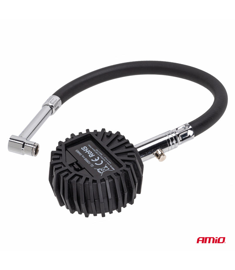 Ciśnieniomierz cyfrowy manometr z wężem i zaworem resetującym 17 bar AMIO-04465 Cyfrowy ciśnieniomierz z elastycznym wężem 30 cm i zaworem resetującym to profesjonalne urządzenie pomiarowe przeznaczone do pracy w warsztatach i serwisach oponiarskich. Dzięki elastycznemu przewodowi pomiar ciśnienia w oponach jest wygodny i możliwy nawet w trudno dostępnych miejscach. Zawór upustowy umożliwia szybkie skorygowanie wartości bez konieczności zdejmowania przyrządu. Cyfrowy...